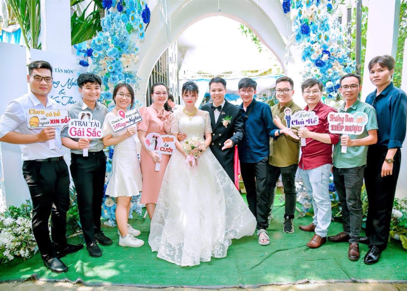 Đám cưới có sự góp mặt của gia đình, họ hàng, bạn bè hai bên đến chúc mừng. Điều đặc biệt là thành viên của J&V Solutions đã đến tham dự buổi lễ. Chúng tôi rất vui và cảm thấy hạnh phúc.