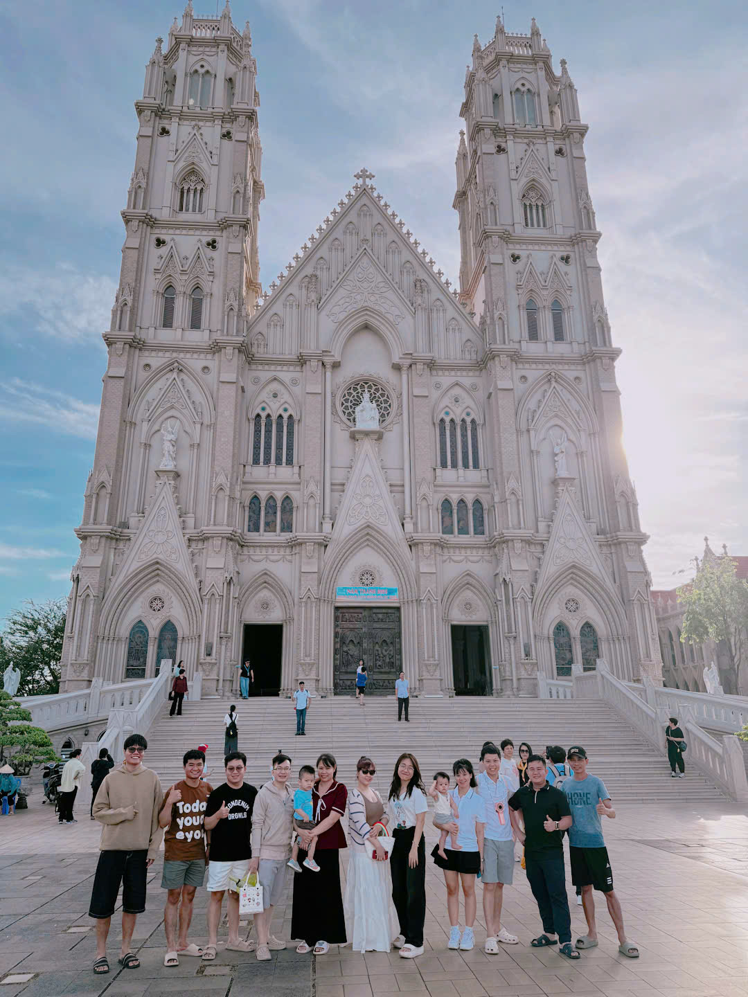 Nhà thờ gây ấn tượng với lối kiến trúc đẹp mắt và không gian yên bình. Dù chỉ dừng chân trong thời gian ngắn, nhưng ai cũng cảm nhận được sự tĩnh lặng và trang nghiêm nơi đây. Mọi người tranh thủ chụp vài tấm hình lưu niệm và tận hưởng không khí trong lành trước khi tiếp tục hành trình trở về Sài Gòn.